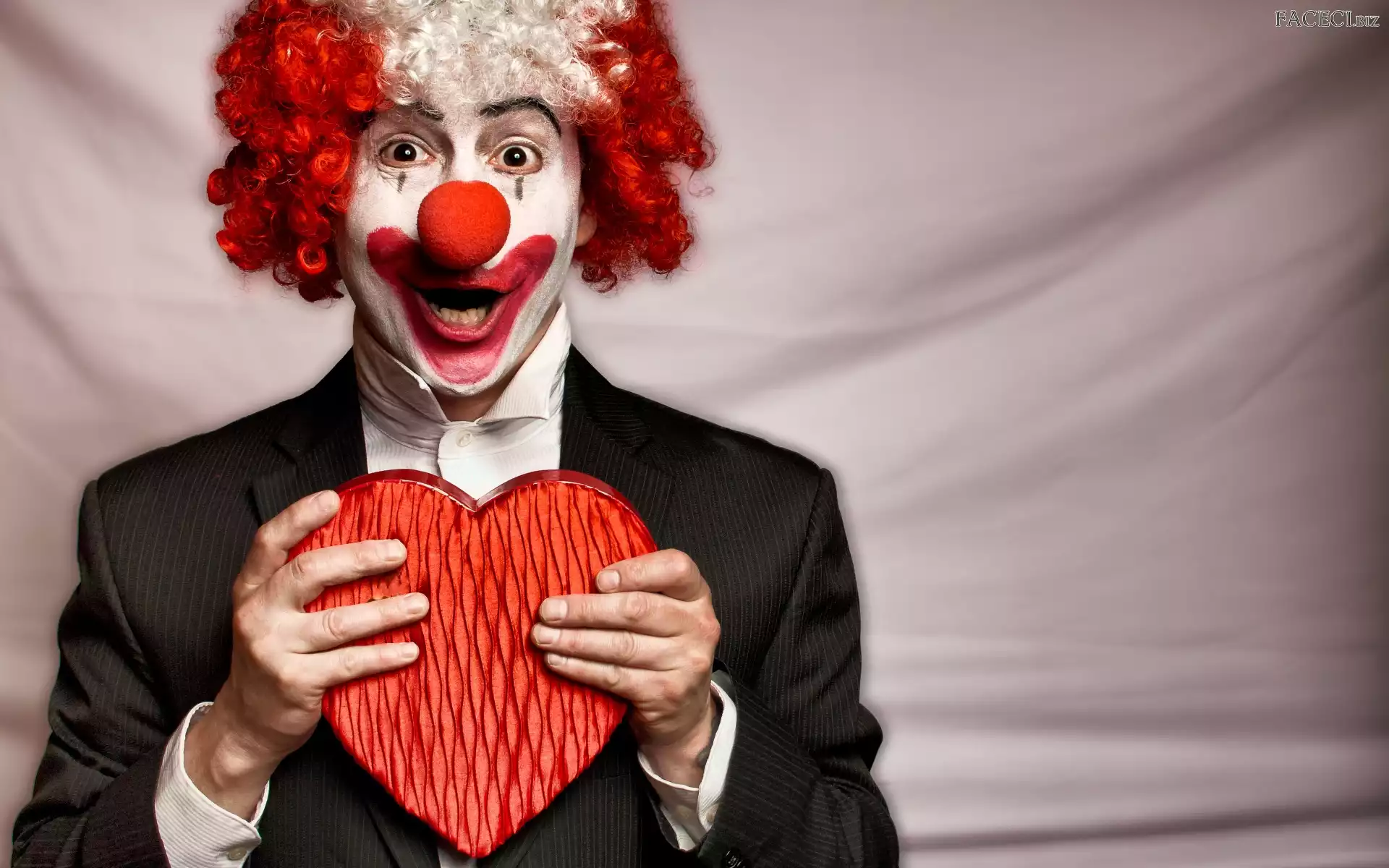 Serce, Czerwony, Klaun, Czerwone, Dłonie, Peruka, Mężczyzna, Nos - faceci.biz